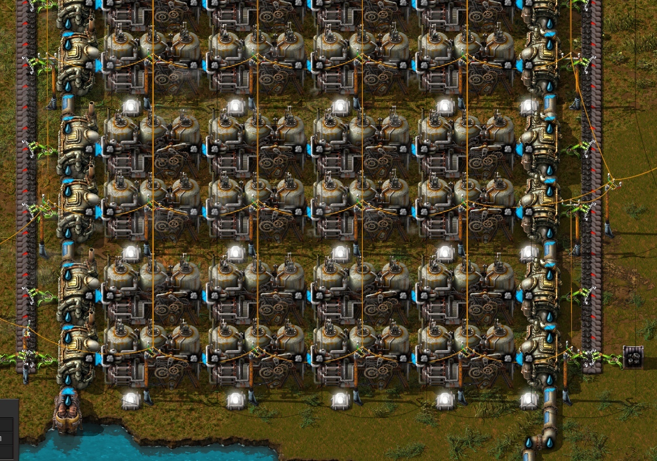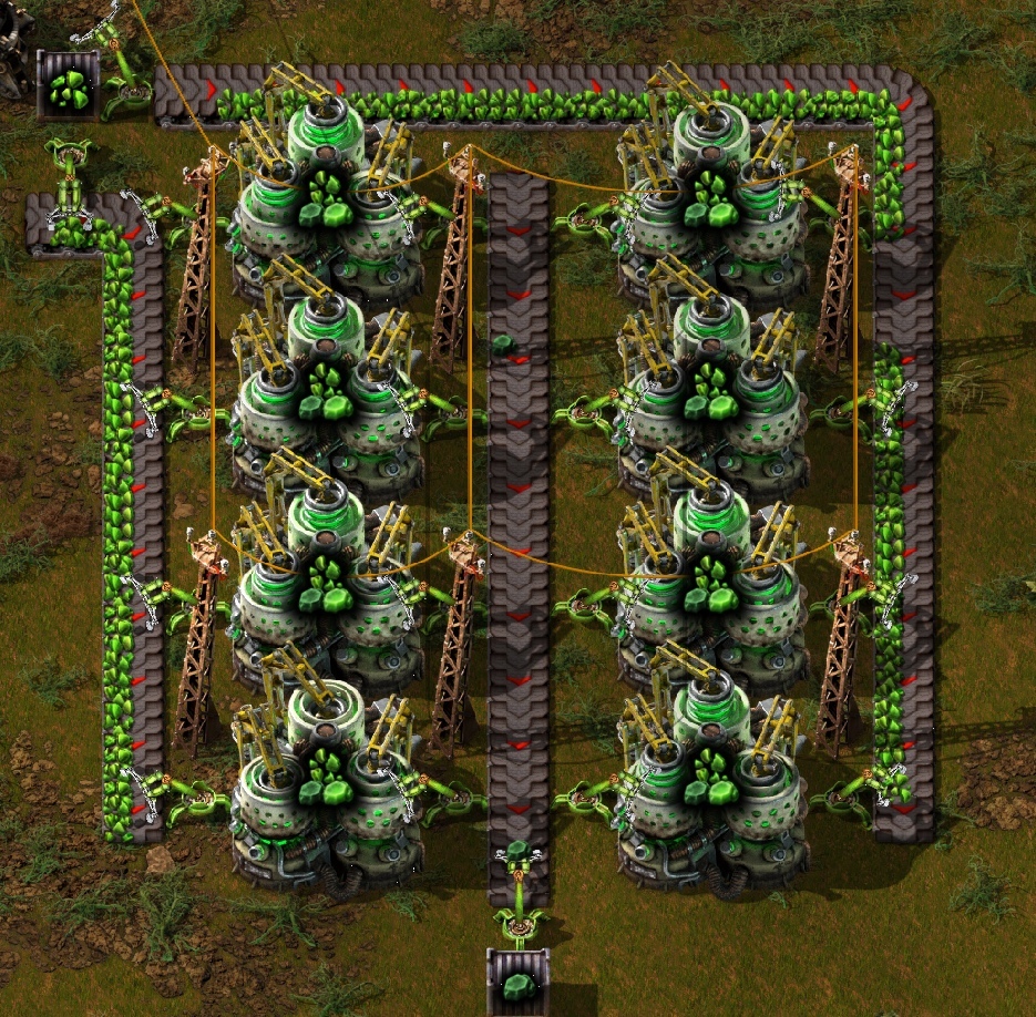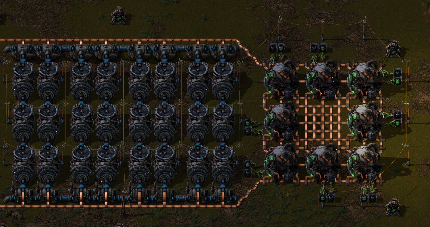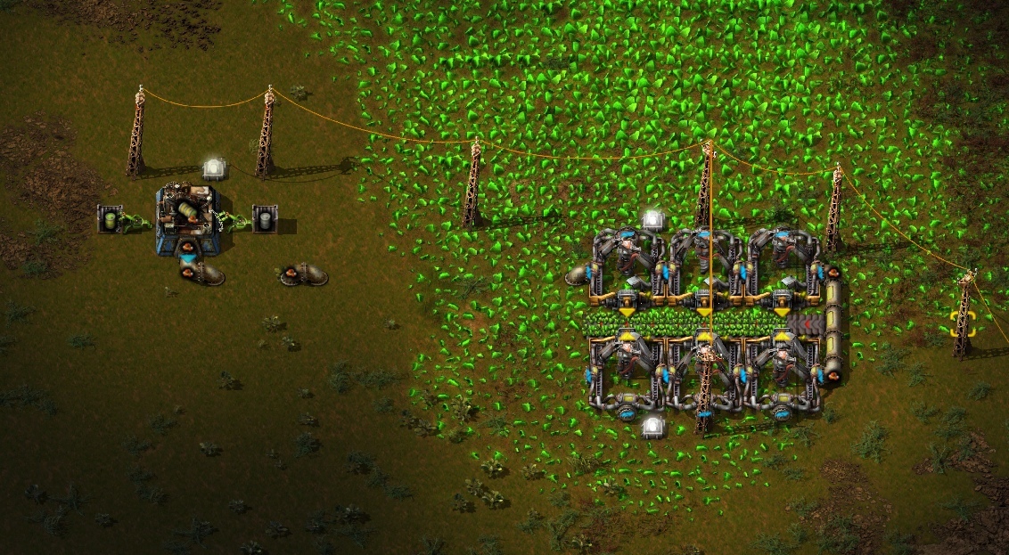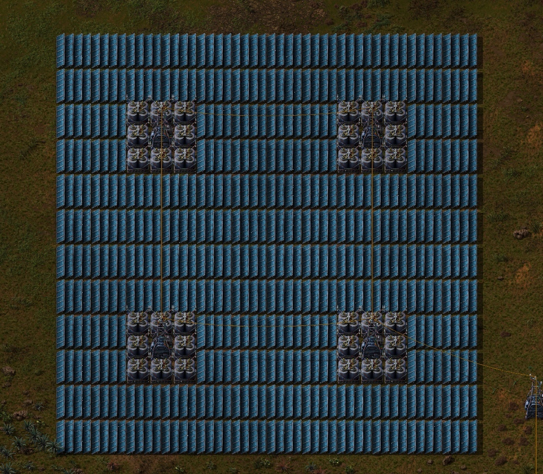 В общем и целом идеальную структуру мы можете наблюдать на скрине выше. С ней вы можете идти до конца игры. Просто копируя ее и увеличивая по мере потребностей(главное проверяйте что у вас происходит в потреблении, через опору лэп)