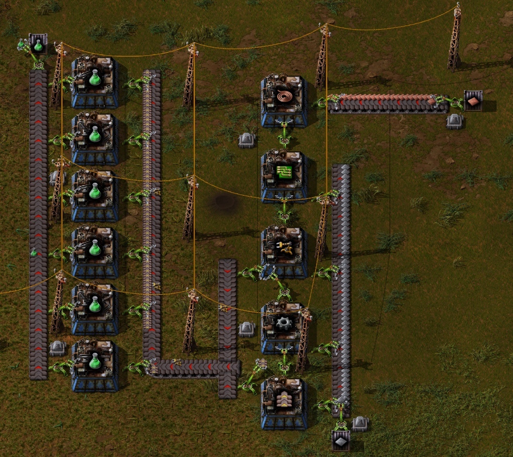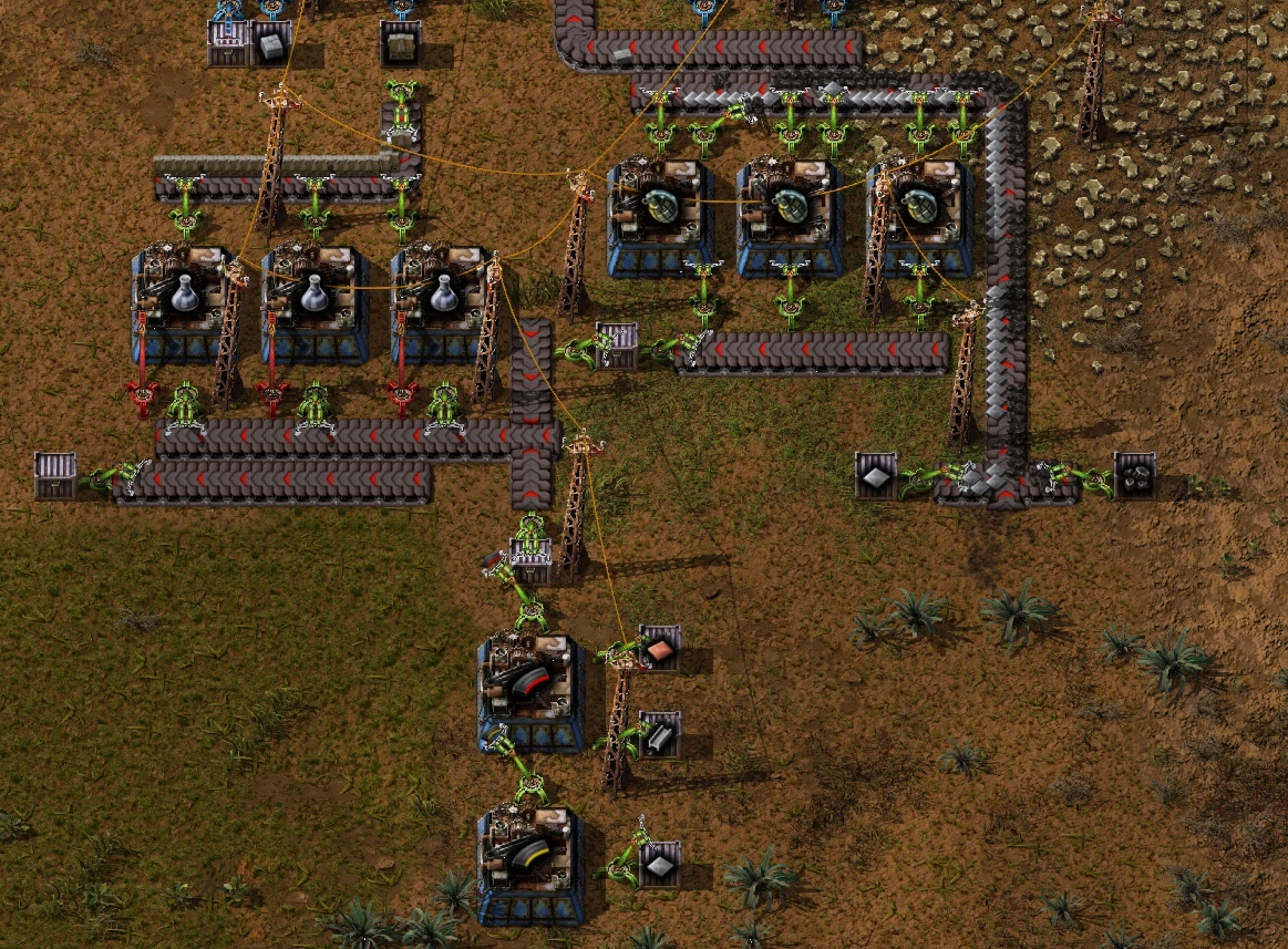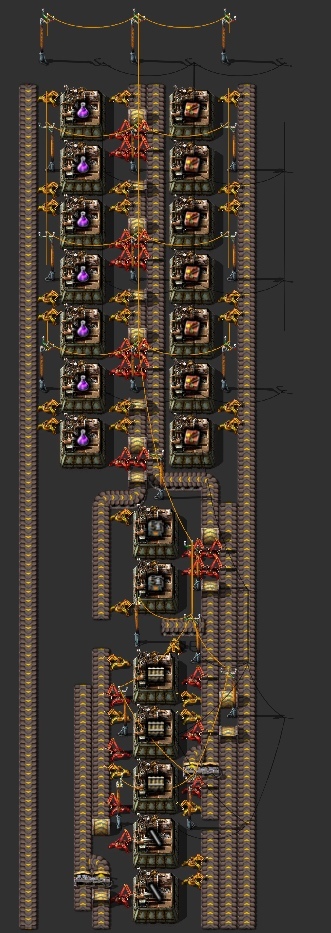 Тут вы можете увидеть производство фиолетовых банок, оно сходится по математике производства, посмотрев в голове тихий ужас, но на самом деле это еще хороший вариант завода.